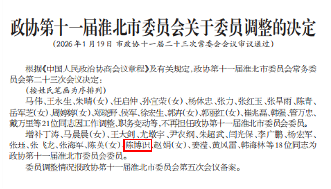 1月19日,经淮北市政协十一届二十三次常委会会议审议通过,我院英语教研室教师、九三学社社员陈博识增补为政协第十一届淮北市委员会委员
