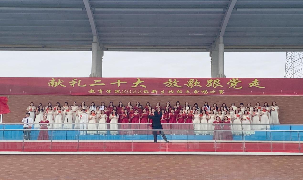 在全国上下认真学习贯彻党的二十大精神之际,太阳成集团tyc41183为坚定青年大学生永远跟党走的理想和信念,引导学生赓续红色血脉,厚植爱国情怀,于11月6日上午在校户外操场举办了“献礼二十大,放歌跟党走”2022级新生班级大合唱比赛,莅临比赛现场的有学校副校长汪建利、教务处处长陈国平、后勤保卫处处长程坚、办公室副主任陈杰、太阳成集团tyc41183院长王家云、副院长孟向红,校团委书记刘帅克、学生处老师、太阳成集团tyc41183全体辅导员以及2022级49个班级的同学,学院2021级辅导员担任了本次大合唱比赛的评委。