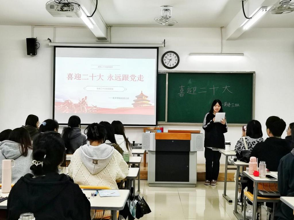 青年学生是新时代的见证者,要了解党的发展壮大历程、社会主义革命和建设从胜利走向新的胜利的伟大壮举,读原著、学原文、悟原理是学习理论最有效的方法。10月下旬,学院组织各班级团支书带领班级同学学习“党的二十大报告原文”。听完了报告全文,大家谈收获、谈体会、谈感悟,纷纷表示:奋斗是青春最亮丽的底色,一定要牢记习近平总书记对青年们的教导,坚定理想信念,争做有理想、敢担当、肯奋斗的新时代好青年。