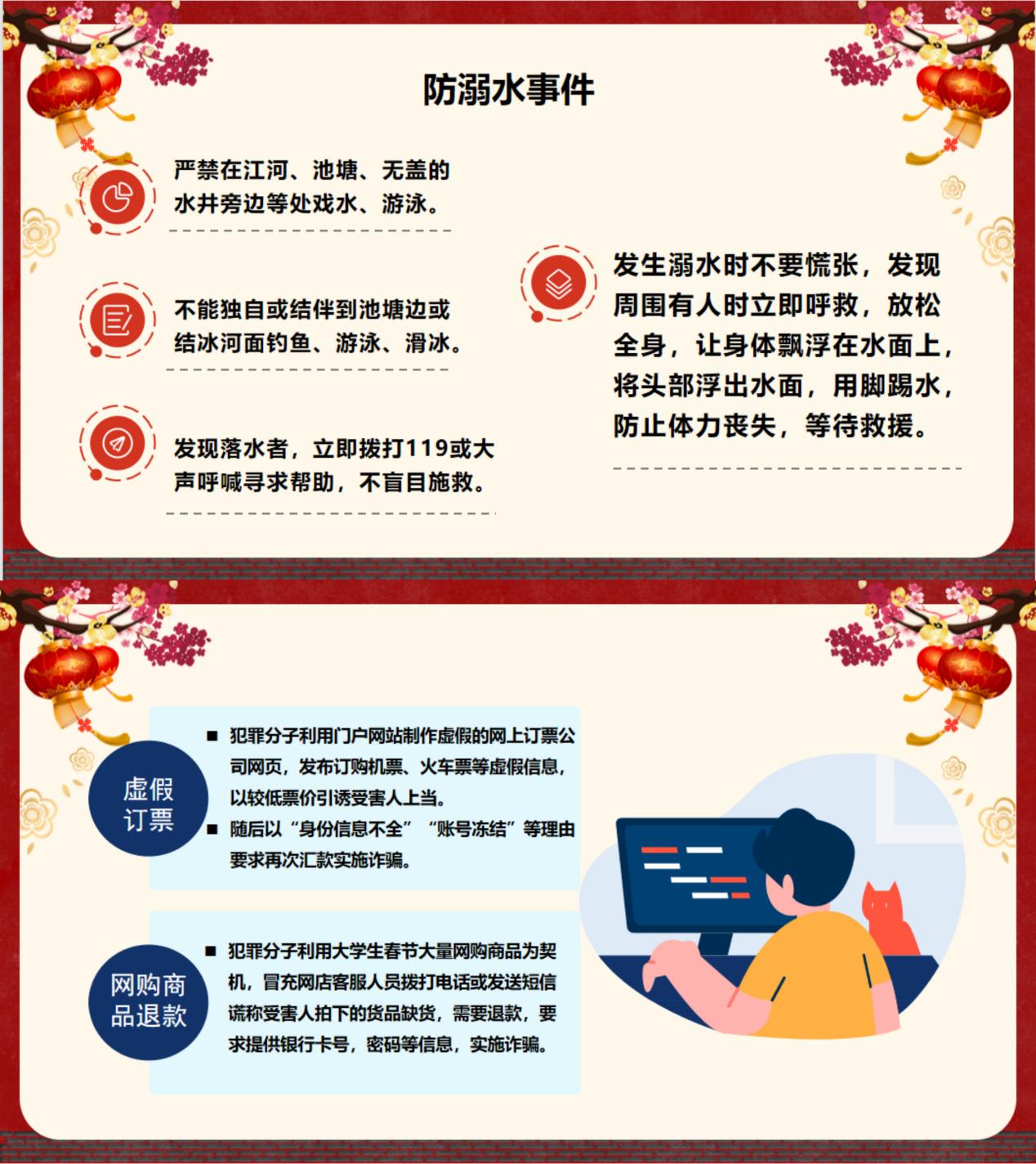 辅导员老师们首先表达了对同学们寒假期间的学习、生活等方面情况的关切,并转达了学校及老师们对同学们新年的美好祝福。会上,辅导员老师对同学们寒假期间的情况进行大致了解,并对大家学习、生活、娱乐和时间管理方面提出了相应建议,提醒同学们在寒假期间做好防火、防盗、防触电等各项安全措施,围绕出行安全、通讯安全、户外安全、疫情防护安全等多方面对学生进行细致入微的宣传教育,同时着重强调谨防电信诈骗,保障自身生命财产安全。