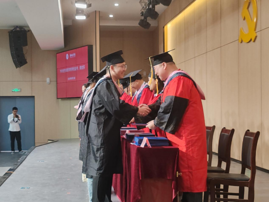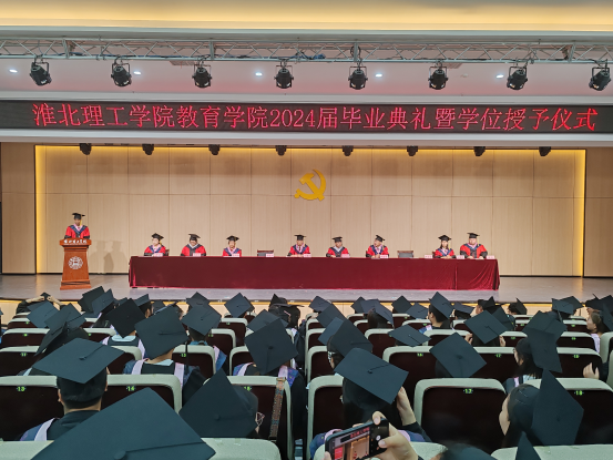 毕业典礼在雄壮的国歌声中拉开帷幕,副院长谢贤德宣读了《tyc41183太阳成集团2024届本科毕业生学士学位授予决定》后,出席仪式的领导和教研室主任分别为毕业生代表颁发学历、学位证书,并进行拨穗正冠与合影留念。