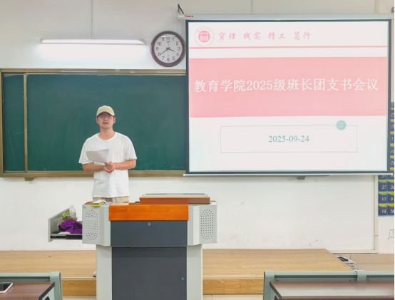许海涛老师作开场发言,他围绕学生干部的职责与使命提出四点要求:一是要求各位班长、团支书认清自身角色,明确责任担当,成为班级的思想引领者和活动组织者,营造积极健康的班风学风;二是要把握工作重点,团结班委成员,增强班级凝聚力,积极引导同学适应大学生活,组织学习小组与各类班级活动,丰富同学们的课余生活;三是要不断提升沟通协调、组织管理、团结协作及应急处置能力,切实发挥师生之间的桥梁纽带作用;四是要合理安排学习与工作时间,在各方面发挥表率作用,做到学业与班级工作两不误。