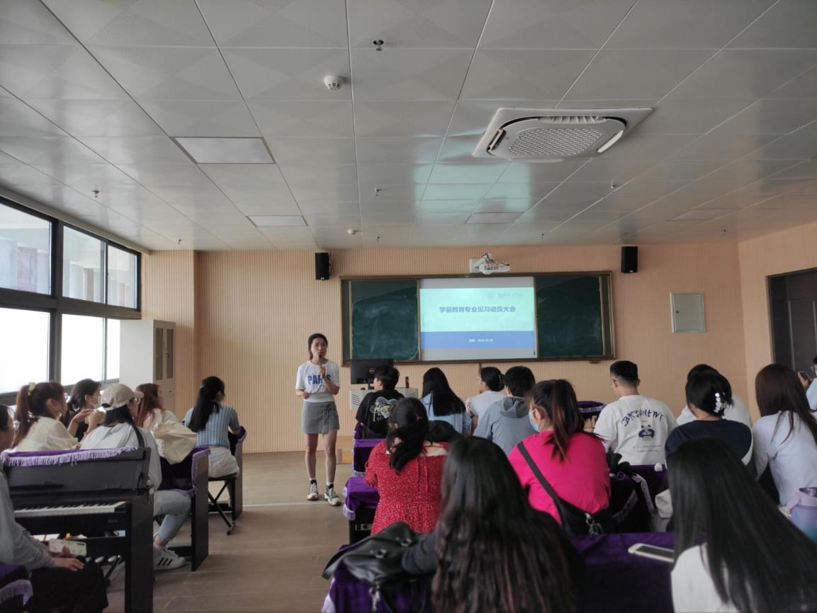 学前教育专业见习是学前教育专业教学计划的重要组成部分,是贯穿专业培养全过程重要的教育实践环节,是师范专业学生从学习教育理论到教育实习之间的过渡环节。为了顺利推进教育见习的开展,学前教育专业教研室于5月30日中午组织召开“2021级学前教育专业教育见习动员大会”,参会人员有学前教育教研室主任米玉、学前教育副主任尹爽、辅导员任若晨、学前教育专业各班班委。