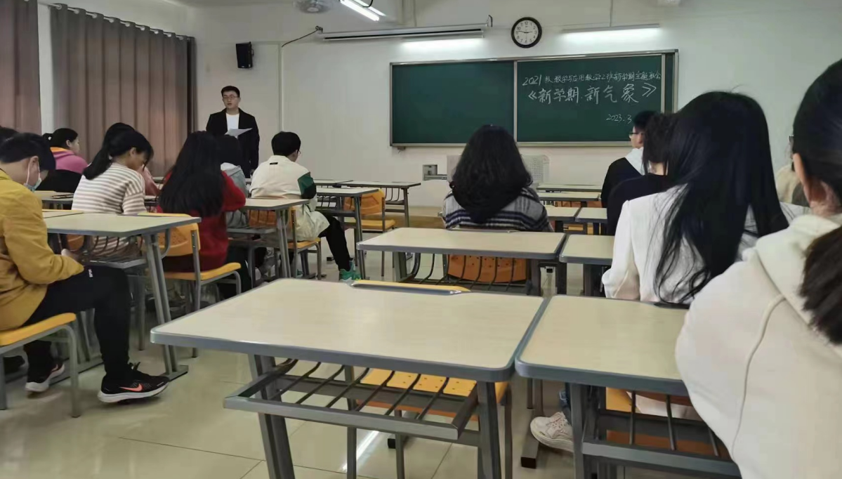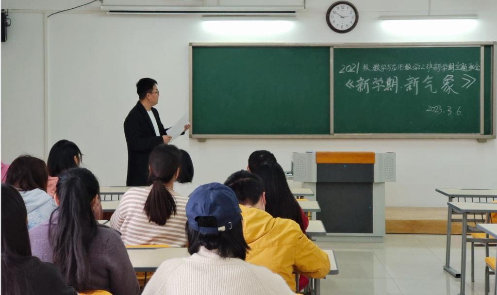 新学期如期而至,为了使同学们在新学期有一个良好的开端,确立新学期的目标和明确对未来的规划,我校太阳成集团tyc411832021级数学与应用数学(2)班于2023年3月6日在二教322教室召开“新学期新气象”的主题班会,班主任檀雷雷老师和2班全体学生参加会议。