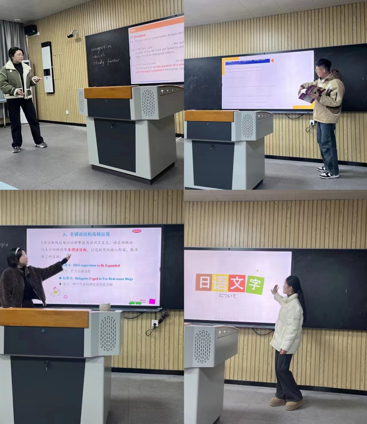 经过精心准备,3名2024年、4名2023年新教师参加了此次试讲。他们分别就不同的英语科目进行了认真的展示,内容涵盖了大学英语、听力、综合英语、英美报刊选读和写作等。每位新教师都围绕各自的教学主题,运用多媒体教学工具、互动式教学法和创新教学策略,进行了20分钟的教学演示。