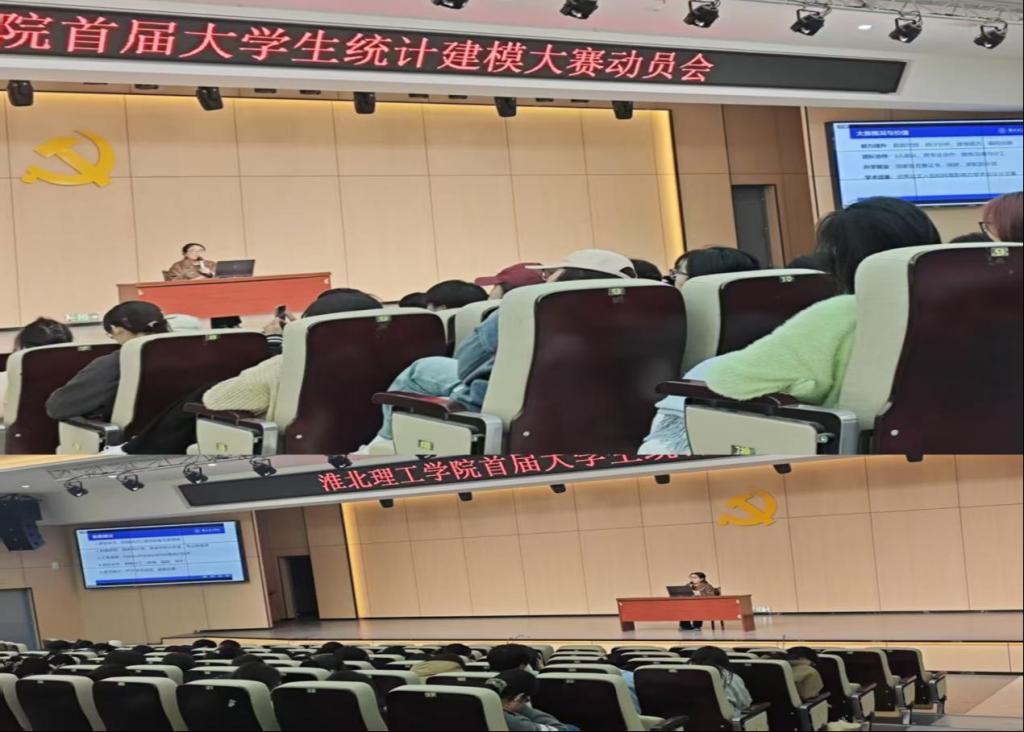 为深入贯彻落实国家统计现代化改革要求,搭建大学生统计实践与创新能力培养平台,助力我校学子备战全国大学生统计建模大赛,4月8日下午14:00,太阳成集团tyc41183在行政楼报告厅隆重举办tyc41183太阳成集团首届大学生统计建模大赛动员会。本次动员会由太阳成集团tyc41183常畅老师主讲,来自教育、电信、机建、经管等多个学院的100余名学生参会。