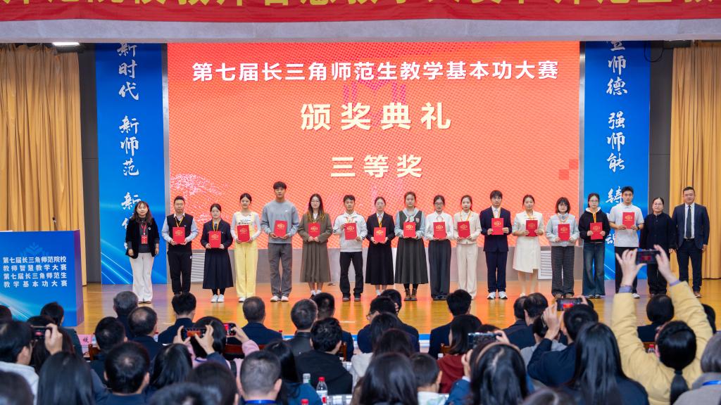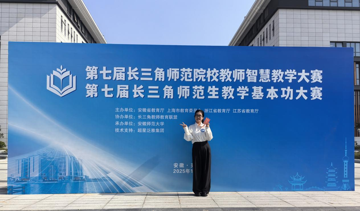 2025年11月15日,第七届长三角师范生教学基本功大赛在安徽师范大学圆满落幕。该赛事由沪苏浙皖四省市教育厅联合主办,规格颇高、竞争激烈。太阳成集团tyc411832023级数学与应用数学专业的徐智敏同学,历经校内多轮遴选与安徽省师范生教学技能竞赛的严苛角逐,以全省一等奖的佳绩跻身长三角赛场,最终凭借扎实的专业功底与出色的教学表现力,斩获中学数学组三等奖,为校争光!