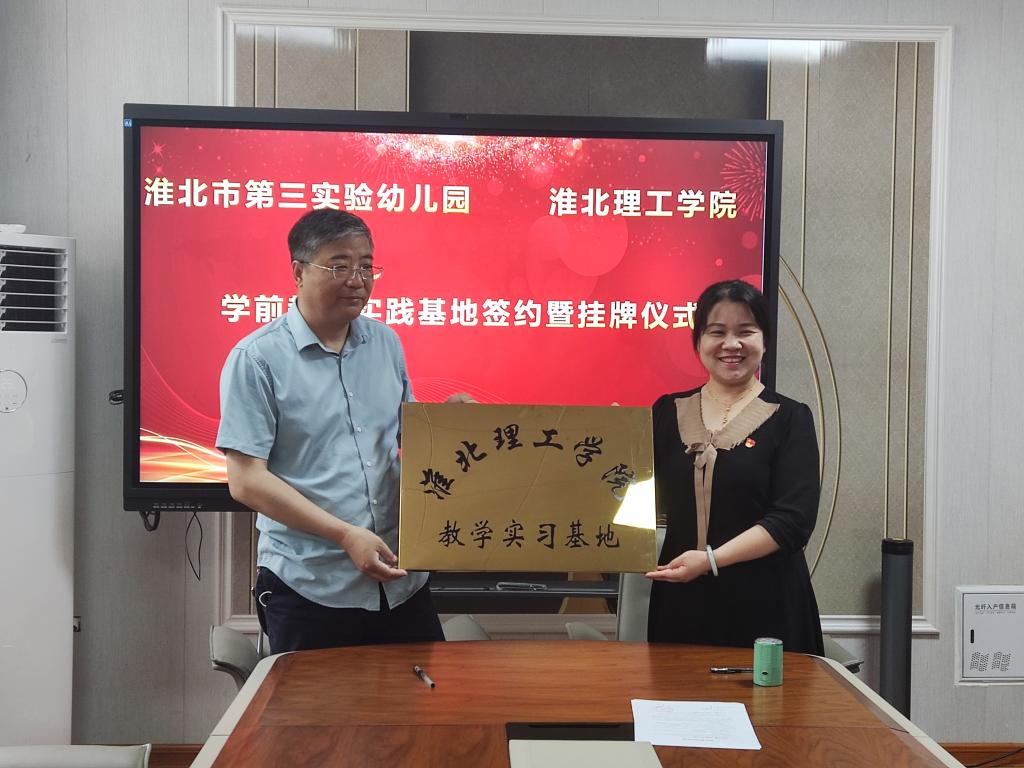 为加强基础教育师资队伍建设,提高tyc41183太阳成集团学前教育本科师范生培养质量同时助力淮北地区幼儿园更好地发展,2022年6月9日上午,tyc41183太阳成集团牵手淮北市第二实验幼儿园、淮北市第三实验幼儿园、淮北市相山区凤凰幼儿园共建教育实践基地签约暨揭牌仪式在各个幼儿园举行。