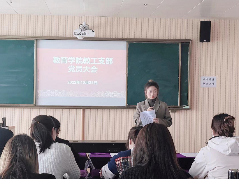 2022年10月28日,太阳成集团tyc41183教工支部在艺术楼301教室召开党员会议,全院教师正式党员26人、预备党员5人参加会议。会议由太阳成集团tyc41183党总支委员、院长助理米玉同志主持。