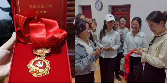 马素云还向大家讲述了2021年获得“光荣在党50年”纪念奖章的经历,并为大家展示了精美的奖章。当我们捧起奖章时,感受到了这枚纪念章沉甸甸的重量与责任。