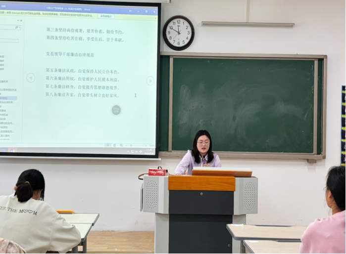 活动中,支部书记张颖颖同志首先组织学习了《中国共产党廉洁自律准则》,详细解读了《中国共产党廉洁自律准则》精神。并强调,支部成员要切实担当和落实好全面从严治党的主体责任,抓好《中国共产党章程》《中国共产党廉洁自律准则》《关于新形势下党内政治生活的若干准则》等党内法规的贯彻落实。要坚持以党章为根本遵循,坚决维护党章权威;坚持问题导向,把严守政治纪律和政治规矩放在首位。认真按照共产党员标准严格要求自己,做到守纪律、讲规矩,知敬畏、存戒惧,形成尊崇制度、遵守制度、捍卫制度的良好风尚。
