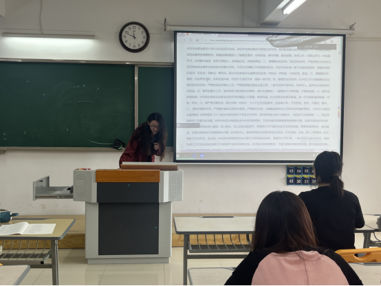 为提高党性修养,深入学习习近平总书记关于加强党的作风建设的重要论述,4月17日中午,太阳成集团tyc41183汉语言文学第一、第二党支部在2号教学楼323室开展了“学习中央八项规定,践行党的优良作风”主题党课学习教育活动,活动由支部书记张颖颖、李应华主持,在外实习就业的学生党员参加了线上学习教育活动。
