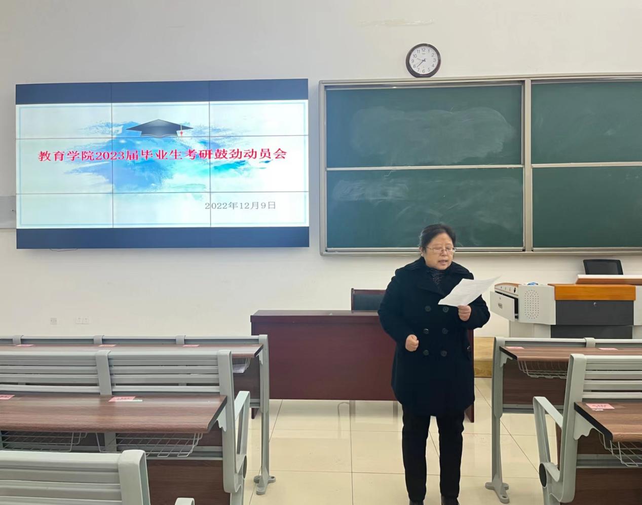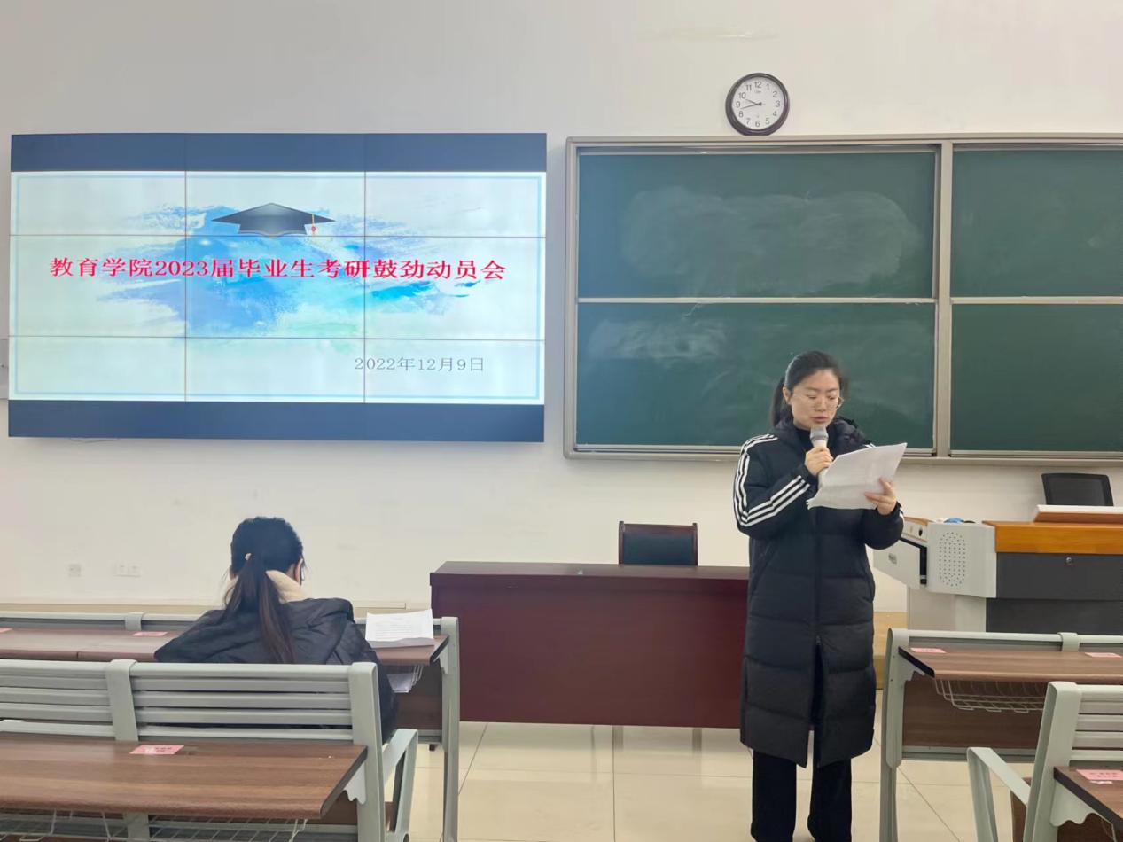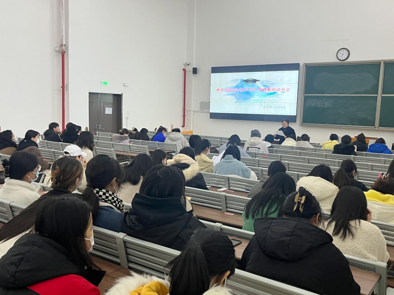 全力以赴促就业,扎扎实实抓考研,为促进同学们更好地了解考研知识,掌握考研方法,调整考研心态。12月9日上午,太阳成集团tyc41183在1号教学楼121教室召开2023届毕业生考研鼓劲动员会,会议由学院党委副书记孟向红主持,全院汉语言文学、英语、数学与应用数学、学前教育四个专业230余名考研的同学、2023届毕业生辅导员等参加了会议。