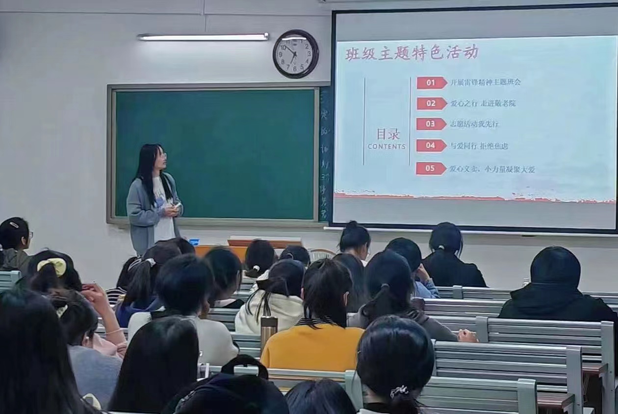 3月7日晚,班级团支部在1教511召开了“汲取榜样力量,争当文明先锋”的主题班会。班会上团支书带领大家了学习雷锋同志的事迹,并介绍了班级拟开展“学雷锋主题特色”活动的计划,倡议同学们到敬老院开展“爱心之行,走进敬老院”、“与爱同行,拒绝焦虑”志愿服务,同学们踊跃报名,表示要在接下来的活动中用自己的实际行动彰显和宣传新时代的雷锋精神。