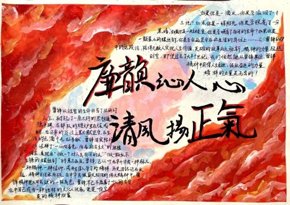 参赛同学以“雷锋精神”为核心,通过介绍雷锋生平感人事迹、绘画雷锋人物形象等方式进行创作。灵动鲜活的《学雷锋,践行动》;多姿多彩的《学雷锋,树新风》;质朴简约的《雷锋日报》。图文并茂,生动活泼,不仅展现出我院学子良好的创作功底,更彰显了同学们对雷锋精神的深刻感悟。