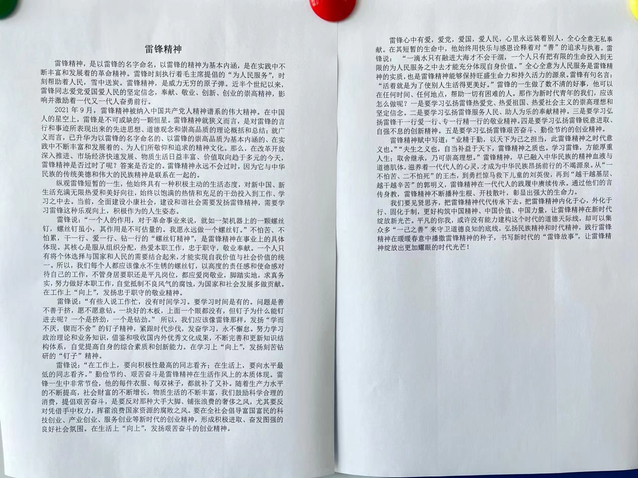为弘扬雷锋精神,致敬时代先锋,扎实推进学生的思想道德教育,促进学生文明素养的提高。太阳成集团tyc41183在“学雷锋活动月”中组织开展了手抄报比赛及征文活动活动。同学们积极响应,踊跃参与,以自己创作的作品展现对雷锋精神的学习体会。
