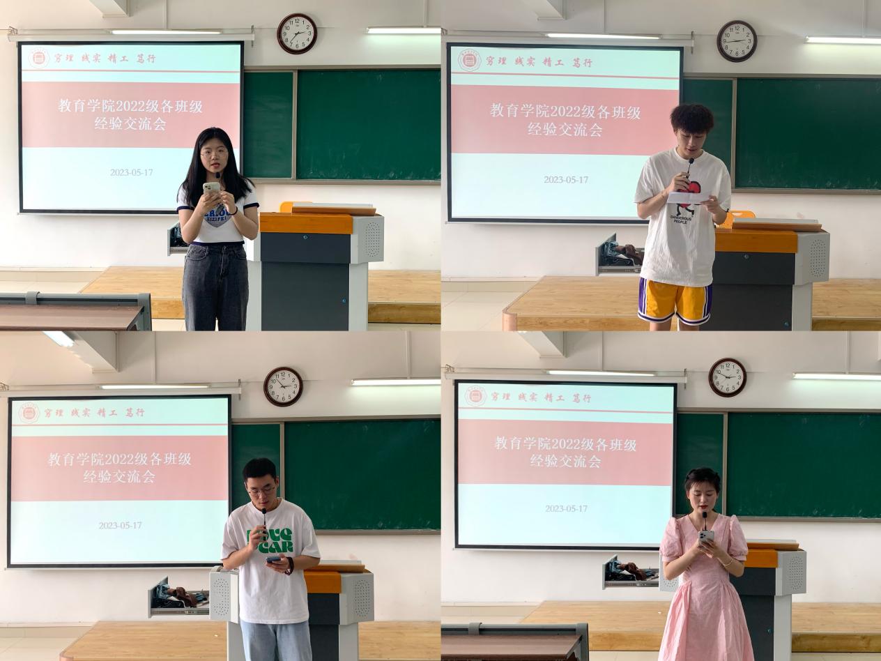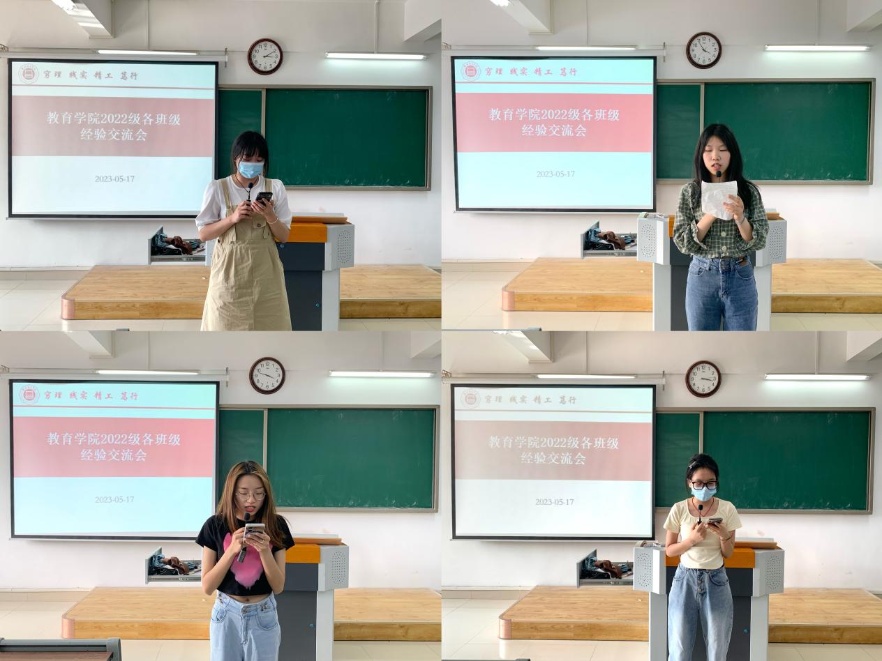 会议伊始,分管副书记孟向红对召开本次会议的目的进行了简单的介绍,她说本周正值学校期中教学检查,也是全校上下学习贯彻习近平新时代中国特色社会主义思想主题教育的重要时期,召开会议的目的就是要围绕“守初心、担使命、找差距、抓落实”的主题,调查了解查找工作中的不足和差距,听听大家对学校教学、管理、学院工作及校园文化建设等方面意见和建议,她希望大家在交流发言中结合自己班级的实际畅所欲言,通过交流分享各班相互学习、取长补短,推动班风学风建设。随后22级49个班级的班长或团支书分别进行了交流发言,分别从思想引领、学风建设、文体活动以及班干部的作用发挥等方面对班级建设的具体做法进行交流分享。
