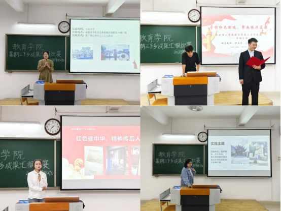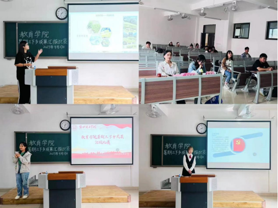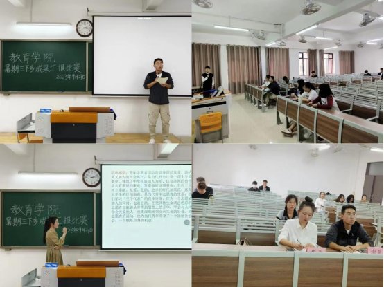 太阳成集团tyc41183暑期开展三下乡社会实践活动,旨在锻炼学生社会实践能力,9月27日下午,太阳成集团tyc41183于2号教学楼415教室、416教室、417教室举办三下乡成果汇报比赛,由23级辅导员老师担任评委,各实践团队同学参加。