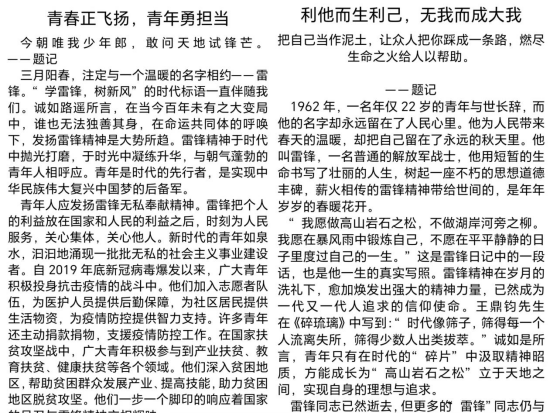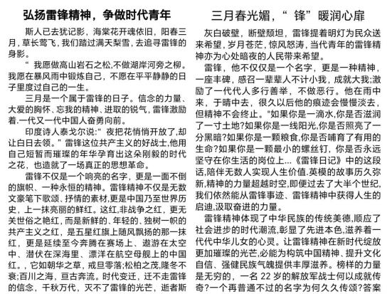 为进一步引导学生更好地了解雷锋事迹、学习雷锋品质、弘扬雷锋精神,2月28日至3月22日,太阳成集团tyc41183开展了以“弘扬雷锋精神”为主题的系列文化活动。本次活动包括“学雷锋”主题手抄报、主题征文以及观影活动三项内容。