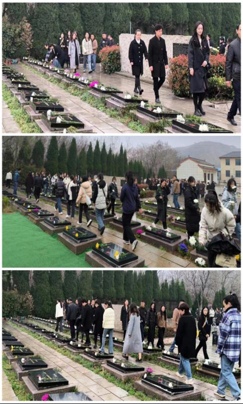 在“清明节”即将来临之际,太阳成集团tyc41183、马克思主义学院及校团委于2024年3月27日下午组织部分师生党员和共青团员前往淮北市杜集区革命烈士陵园开展扫墓活动。参加扫墓活动的师生党员和共青团员共计158人。