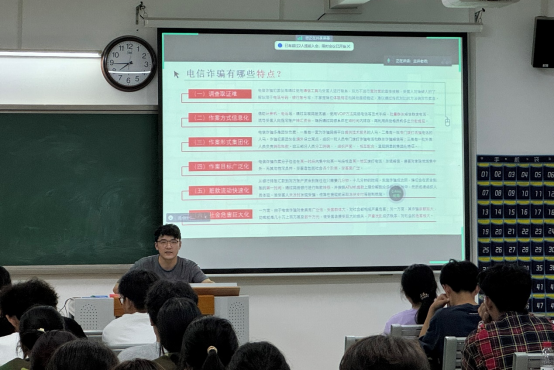 许海涛老师以“谨防电信诈骗”为主题结合“校园电信诈骗”相关案例做了专题讲座,他详细向同学们介绍了电信诈骗的常见形式,识别技巧与预防措施,在信息时代,电信诈骗手段层出不穷,“谨防电信诈骗”教育有助于帮助新生提高警惕,避免上当受骗。