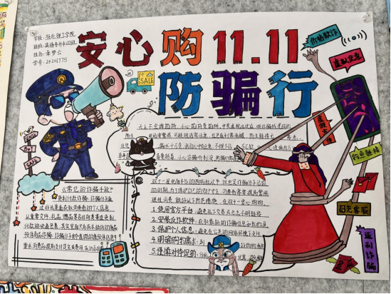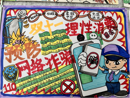 在“双11”来临之际,为增强同学们理性消费的意识,提高预防网络诈骗的能力,太阳成集团tyc41183于11月上旬举办了以“理性消费,预防诈骗”为主题的手抄报比赛。本次比赛旨在引导同学们理性消费,保持理性和警惕,避免陷入消费陷阱和遭受网络诈骗,保障个人财产安全。