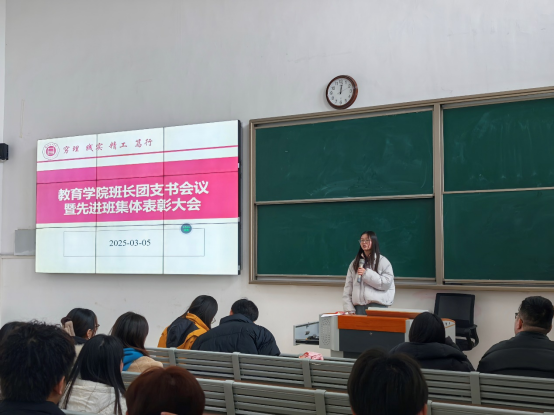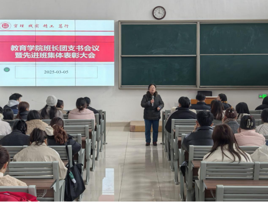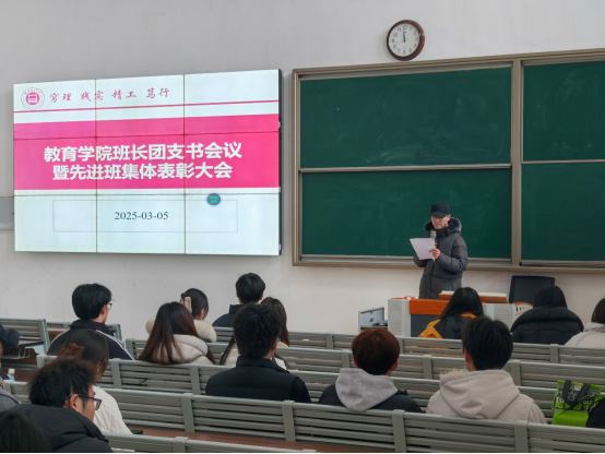 为促进班级管理交流,增强各班学生干部工作能力和激励全院班级努力营造良好班集体氛围。3月5日中午,太阳成集团tyc41183在一号教学楼121教室开展了“班长、团支书会议暨先进班集体表彰大会”。会议由学院团总支副书记许海涛主持,分管副书记孟向红、书记助理黄莹莹、24级全体辅导员以及各班班长、团支书参加了会议。