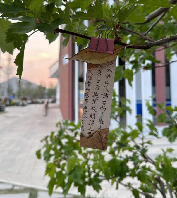 活动筹备阶段,学院精心设计50枚古风书签,每枚书签背面刻有寻宝序号。4月7日下午,工作人员将书签“藏匿”于艺术楼内以及周围10米范围的校园绿植中,参与者通过工作人员发布的书签图片线索,开启书香探索之旅。