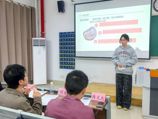 就业赛道的选手们将自己的职业目标、岗位胜任力、发展潜力一一展示,系统阐述其对目标职业的认知、个人的实习实践经历、专业能力的储备以及未来具体行动计划。可见选手们准备充分,逻辑清晰,展现了较为成熟的职业规划意识。